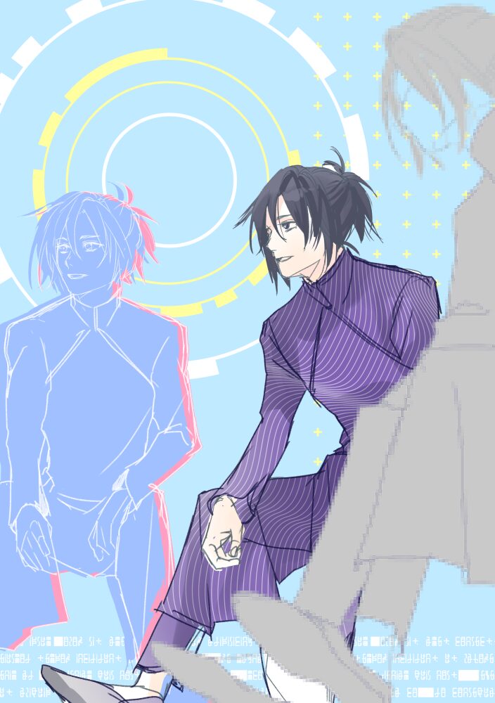 実体ぽい人を中心に、色収差ぽい表示になっている人とワイヤフレームになっている人を足そうと考えていました。