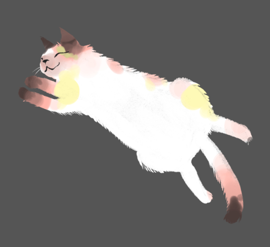 当初はどちらも黒猫だったのですが、寝転がっているこの子は何故か途中で三毛になりました。椅子と机を積極的に占拠します(捏造)