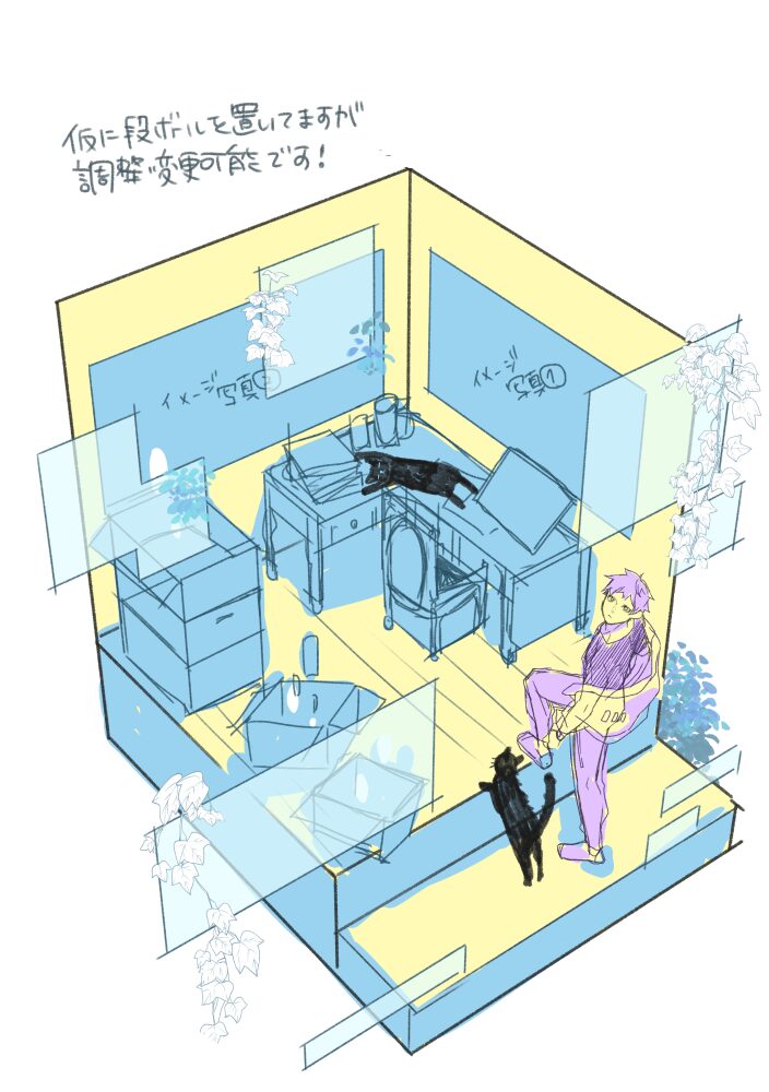 実際にはこんな感じで3D立方体と平面と人物をあわせたものがベースになっています。