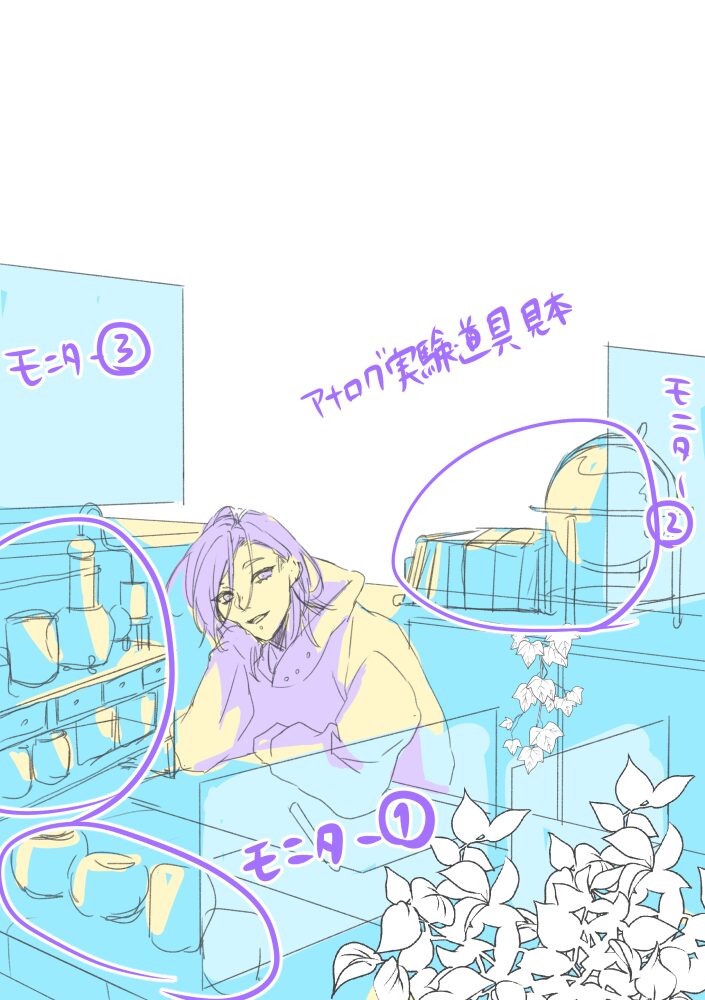 一番左側のはよりアナログな実験用具などを並べて、サイバーと錬金術みたいな合せ技演出が出来たら楽しいかなと思っていたものです。